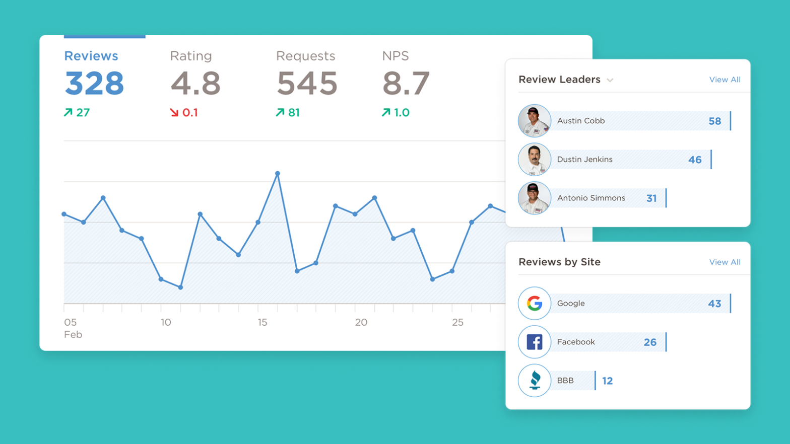 Reporting and insights can help you make smart choices for your business. ReviewBuzz provides in-depth metrics on the company’s performance and your team’s progress in real-time on the Dashboard and Leaderboard.